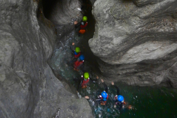 Spannende Canyoning, was zum Dorf von Storo fuehrt, in Trentino. Entlang einer herrlichen enge Schlucht mit sehr hohen Mauern, an einigen Stellen kann man sogar das Licht nicht sehen , so scheint es, in einer Höhle zu sein.Bevor Du mit den anderen Teilnehmern zur atemberaubenden Canyoning-Tour startest, weist Euch den Berg Führer,euer Canyoning-Guide in die Sicherheitsbestimmungen ein und versorgt euch mit der geeigneten Ausrüstung, damit du beim Canyoning bestens ausgerüstet bist.Dann geht es zum Ausgangspunkt der Tour und die Action, im landschaftlich reizvollen Trentino kann beginnen... Auf den unterschiedlichen Strecken bringst Du mit Abseilen, Springen, Klettern, Rutschen, Schwimmen und manchmal sogar mit Tauchen dein Adrenalin in Schwung. Da kommt der ein oder andere schon mal ins Schwitzen bei dieser ungewohnten Anstrengung.Lass Dich überraschen von den vielen Highlights der Canyoning-Tour im Trentino und erlebe Outdoor-Action, die Dich beflügelt.Neben dem sportlichen Reiz des Abenteuers steht vor allem das Naturerlebnis im Vordergrund. Bei dieser Sportart spielen Teamgeist und das gegenseitige Vertrauen eine wichtige Rolle.