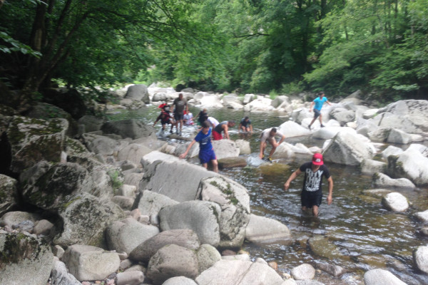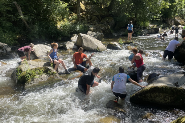 - Balancieren, Springen und Klettern im Flussbett